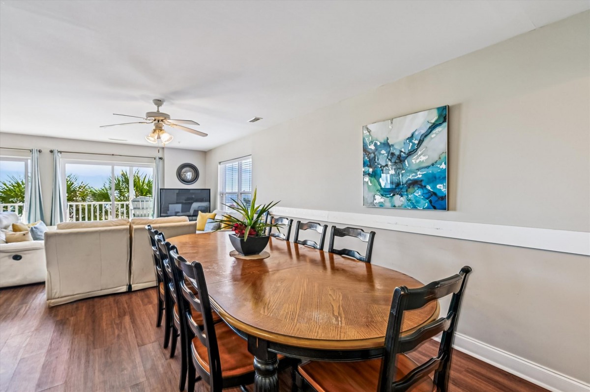 Vacation in North Myrtle Beach with all the comforts of home when you stay at Ambassador Villas 206. This seven-bedroom, five and one half bath condo is large enough for the whole family but also assures you have much-needed alone time. You will have the best views on the beach from the private oceanfront balcony. A few of the bedrooms also have access to a balcony. Spend a sunrise sitting on the balcony and listening to the seagulls greet the day and then prepare breakfast in the fully equipped kitchen. Everyone will appreciate having a full belly when they head to the beach for a full day of fun in the sun.