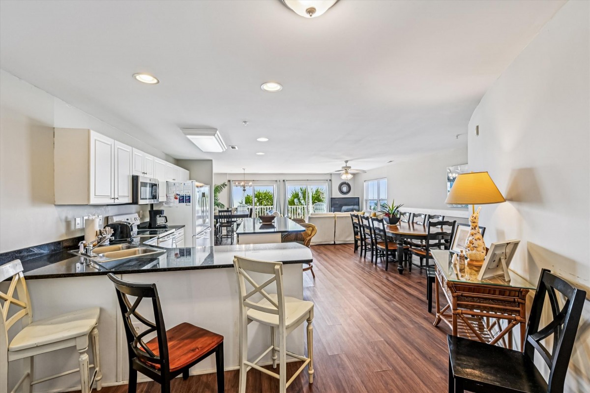 Apart from a spacious living area and comfy bedrooms, Ambassador Villas 206 has a game room with a pool table. The family can have their own pool tournament. The game room is also a good area for the kids to watch TV so that they can watch their favorite shows while the adults watch something else. The living room is perfect for the family to gather as well with plenty of seating. An open living, kitchen, and dining area makes it easy to talk to each other. You can cook dinner and listen to everyone talk about their day. Maybe some people want to play cards at the dining table while others watch a movie in the living room. The condo is perfect for large families and versatile enough for everyone to enjoy their vacation.