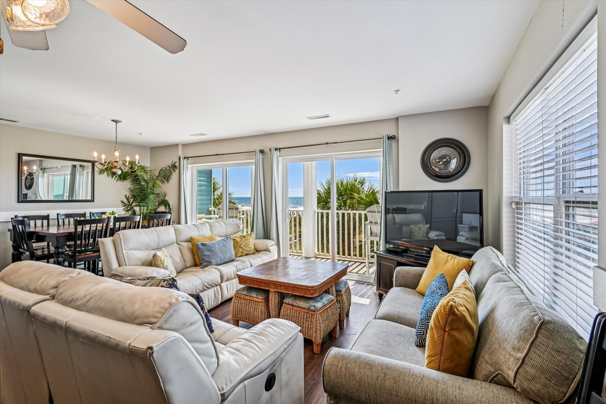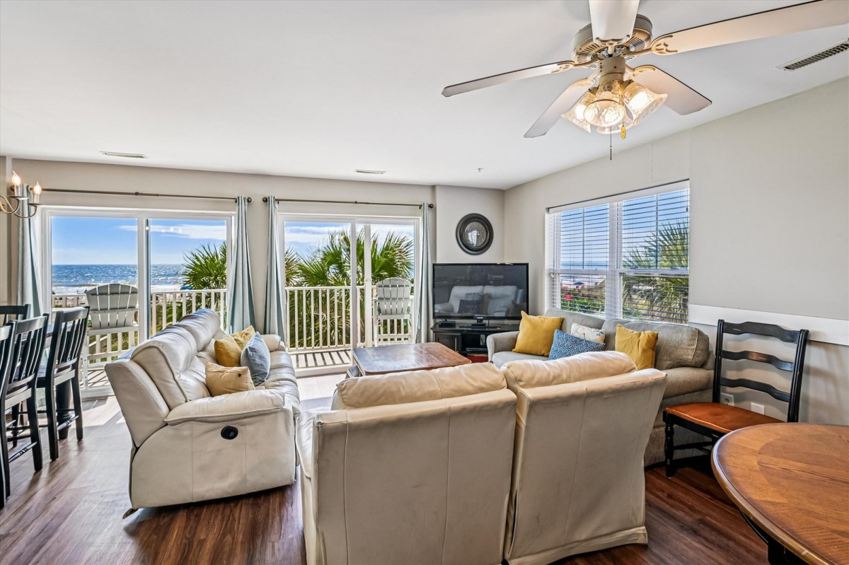 A wooden walkway welcomes you as you make your way to the beach. This makes it easier to carry your beach tote and umbrella although it won’t be far since Ambassador Villas 206 is an oceanfront unit. Sculpt sandcastles or go on a hunt for seashells. Simply soaking up the sun is a perfect way to spend a beach day! If swimming in the ocean isn’t quite your cup of tea, head back to the condo to take a dip in the sparkling pool. You may choose to soak in the outdoor hot tub which is a favorite amenity all year. An outside shower makes it easy to wash off stray sand before taking a dip in the pool or heading back to the condo.