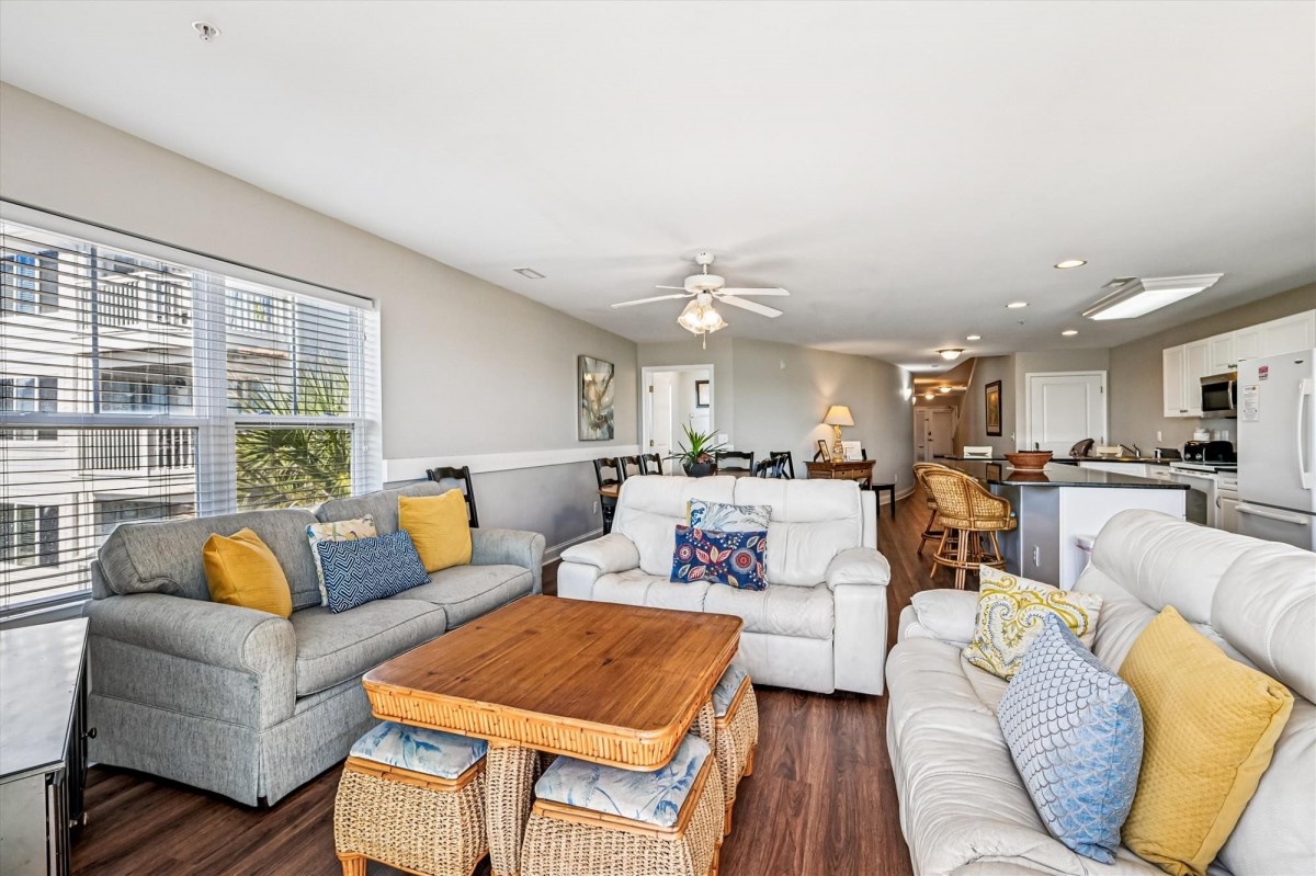 Complimentary WIFI is a must for sharing vacation photos with family and friends on your social media. Don’t worry about making trips to the laundromat. There is a separate laundry room with a full-sized washer and dryer for your convenience. Simply throw in a load of laundry and go about your day. Central heat and air keep the condo comfortable no matter the weather outside, whether it’s a hot South Carolina day or an occasional cool winter night. This condo is perfect for any time of year!