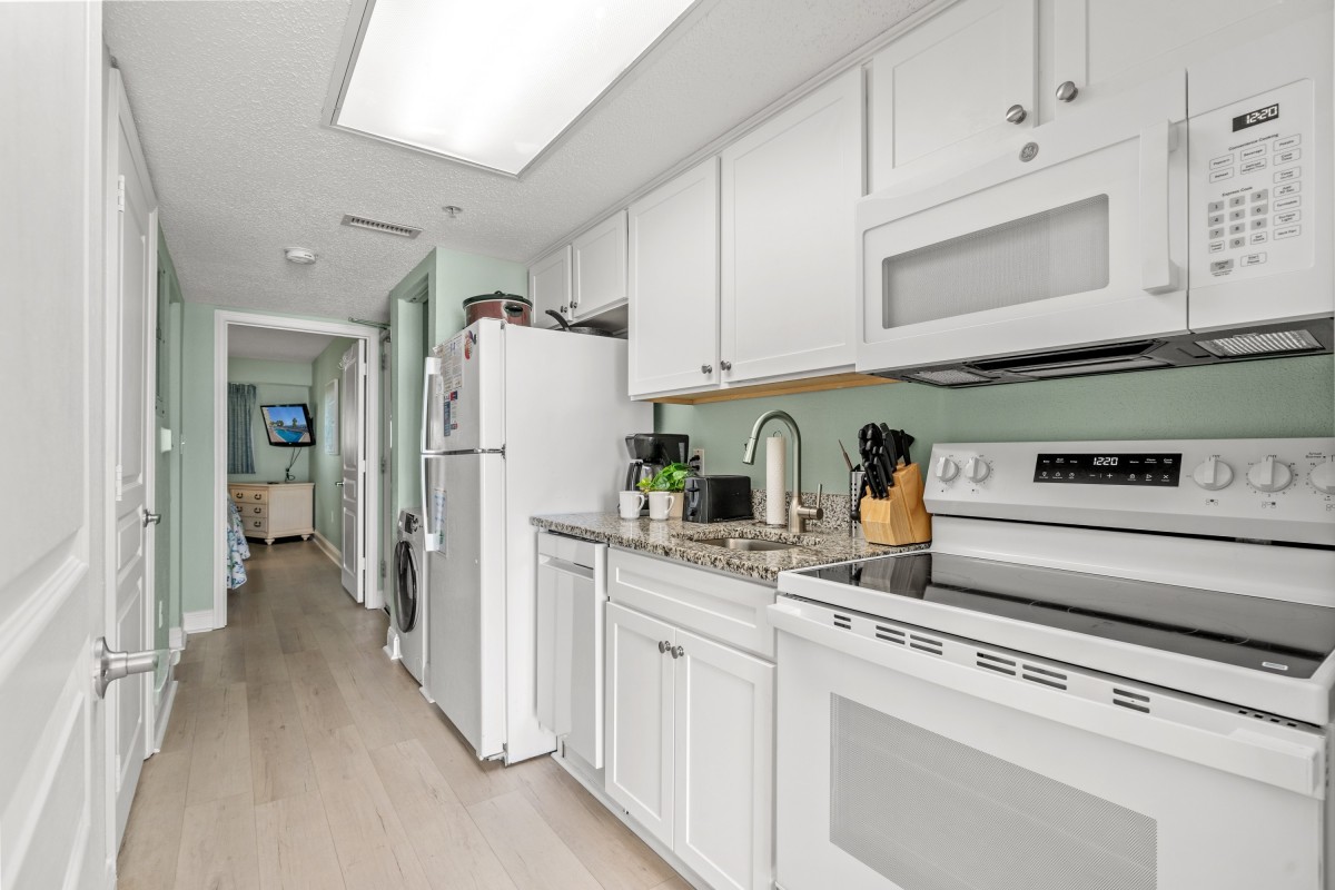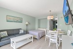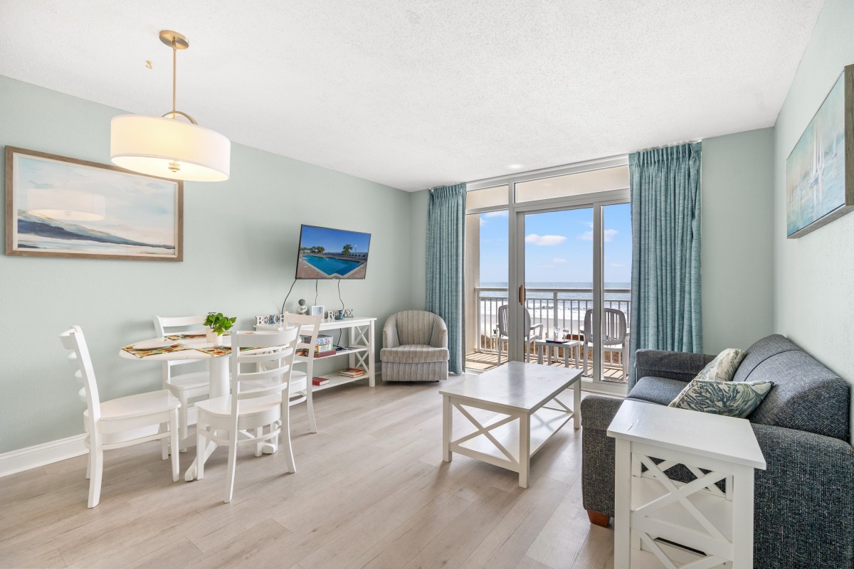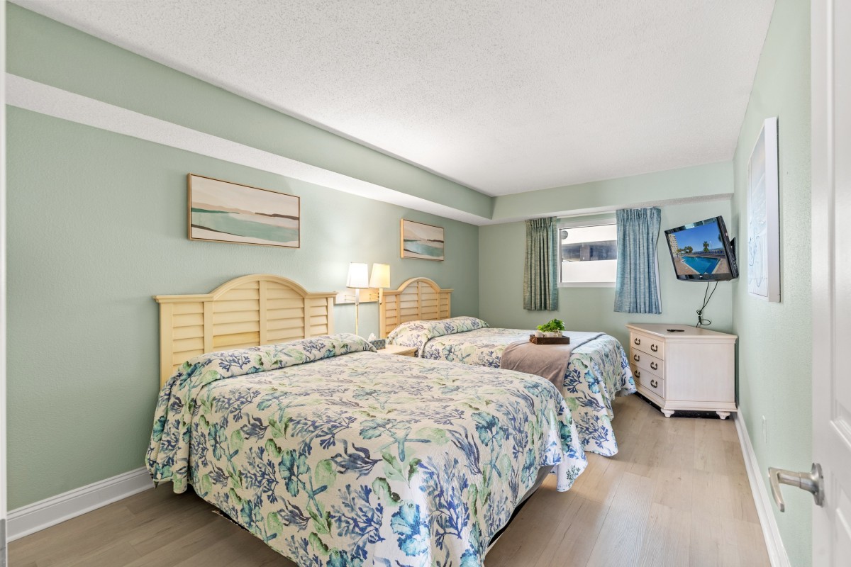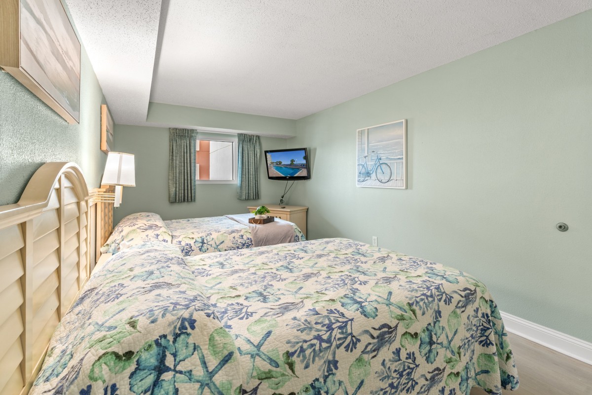 This condo is spacious and has a living room area and a galley-style kitchen. You can sit and watch TV in the living room and still have a fantastic view of the Atlantic Ocean. Prepare an afternoon snack and an icy beverage, and then sit on the private balcony to enjoy this Coastal Carolina view. You can prepare any meal or snack in the fully equipped kitchen. Other amenities in this non-smoking unit include central heating and air, flatscreen TVs, and complimentary WIFI. The resort has a washer and dryer on the premises, so there is no need to take a trip to the laundromat. There is also a fitness room and an onsite restaurant. Bay Watch 3 336 feels like home.
