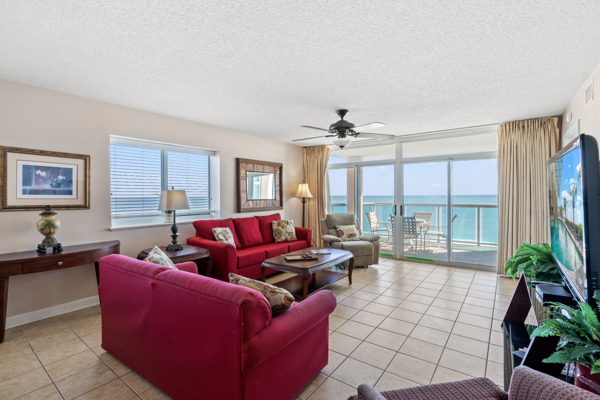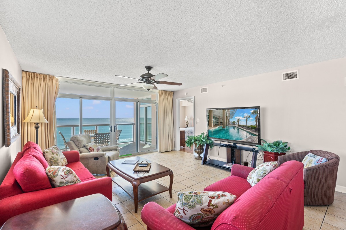 The unit was located right on the ocean front. The unit was spacious and comfortable. We enjoyed our stay.