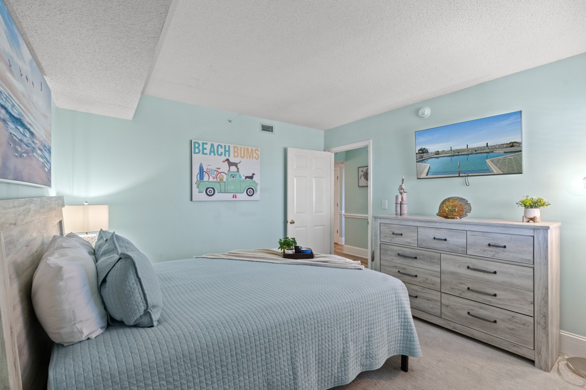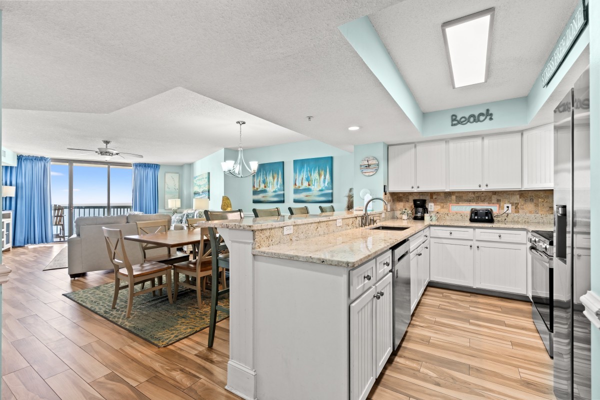Ocean Bay Club 1602 is a North Myrtle Beach vacation rental with four bedrooms and three baths. This oceanfront condominium can sleep everyone comfortably. It is an oceanfront oasis with splashes of color that are most vibrant. This oceanfront condo rental has a well equipped kitchen with a breakfast bar. The dining area is convenient for meals and family games during your North Myrtle Beach vacation.