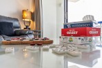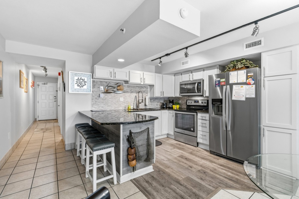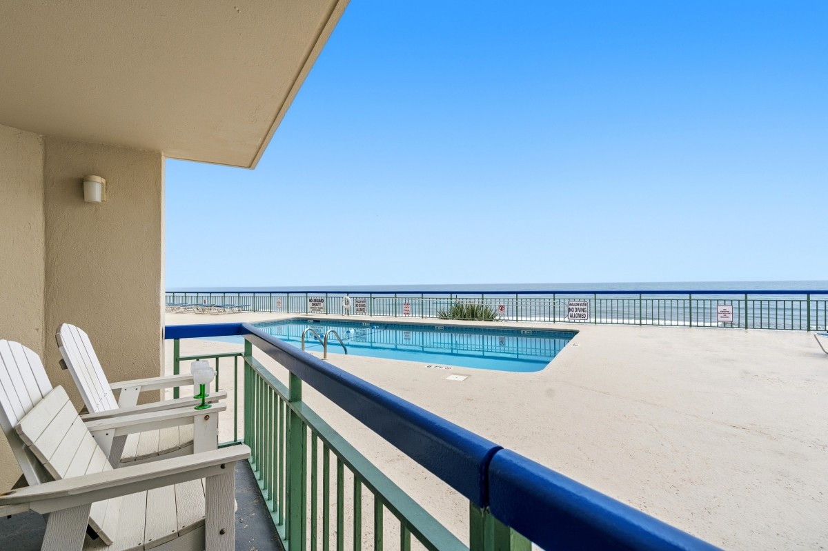 The kitchen in Oceans 415 was truly designed with a family in mind, with an open floor plan that includes granite counters, and a breakfast bar that accommodates extra seating; the dishwasher makes clean-up time simple. The Atlantic Ocean sparkles just outside your living room. The beachy décor and soft colors are just elegant inside this oceanfront gem where you can enjoy the flatscreen CCTVs, WIFI, and fresh central heat & air. A gorgeous fireplace accents the condo, inviting guests to gather for a movie and/or game night in the evening. This condo opens onto the oceanfront pool deck, making it perfect for parents to enjoy during toddler's or children’s nap/rest time. There is a laundry facility on the 4th floor for guests’ convenience; trash chutes are on each floor.