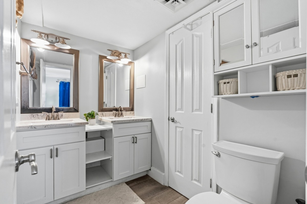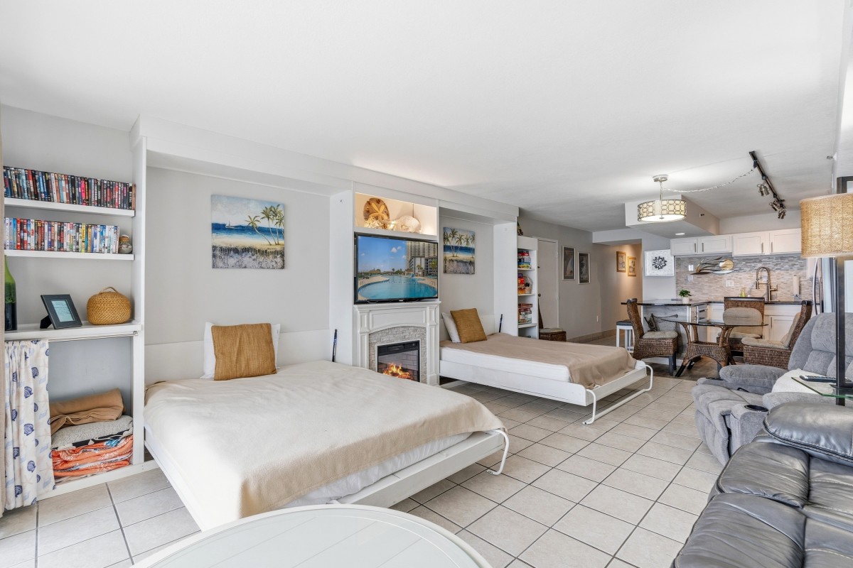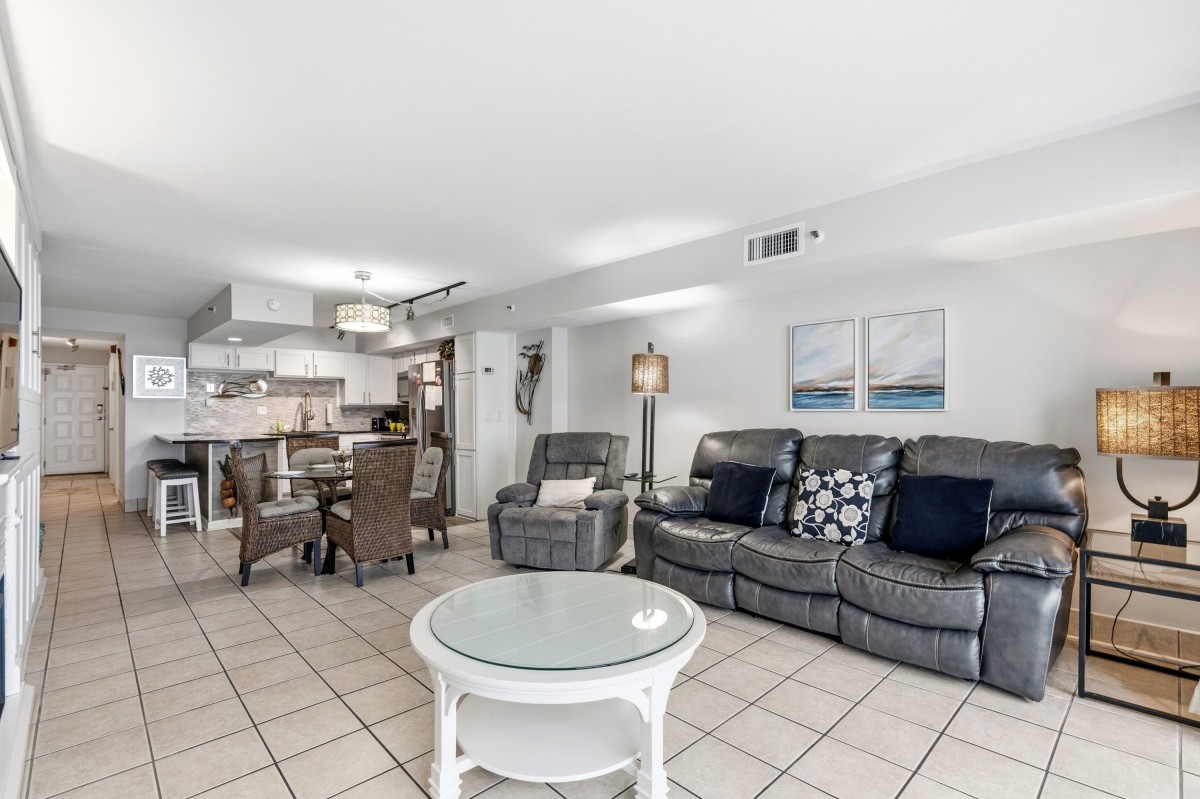 I booked Oceans 415 for the month of February. Very nice and homey! Well stocked kitchen, plenty of hooks on both bathroom doors, 2 dressers for clothes in bedroom, mattress was good, enjoyed the electric fireplace in the living room! New recliner in den! The tile floor throughout (except baths/kitchen) was freezing cold (but remember , it was really cold outside too)! The photos showed a big area rug in living room and BOY, I could have loved having a rug on all that cold tile).