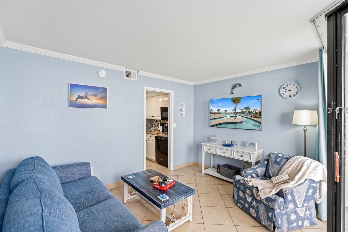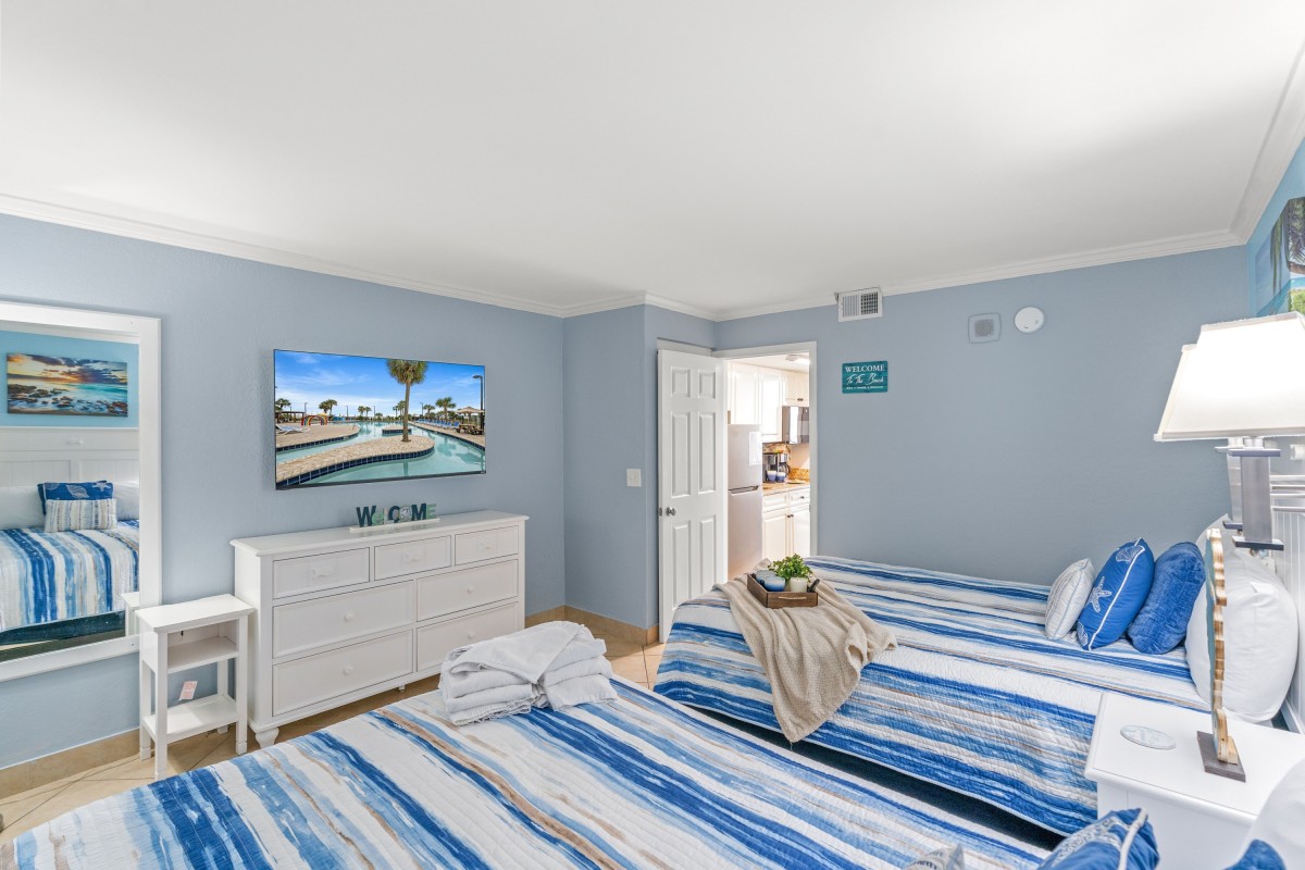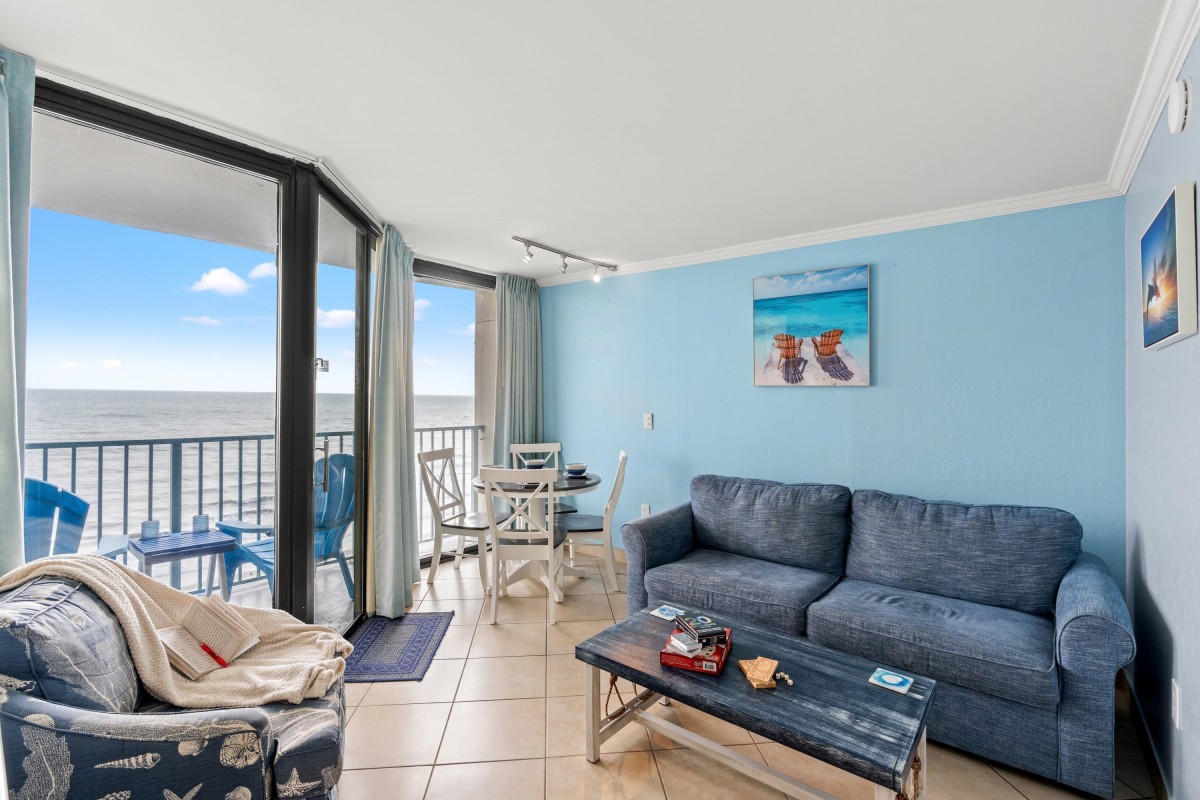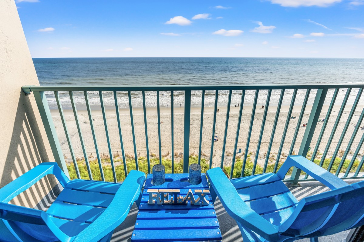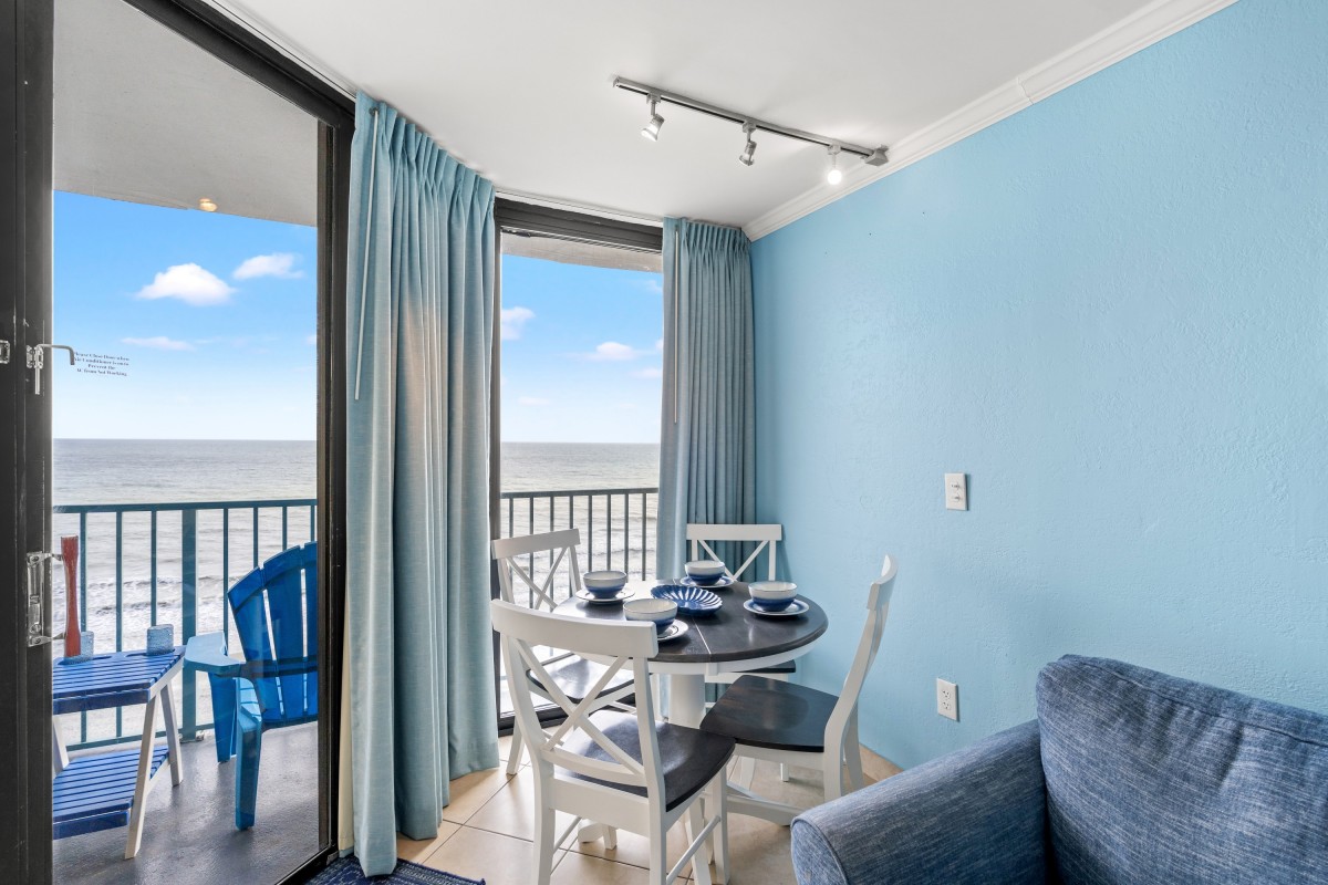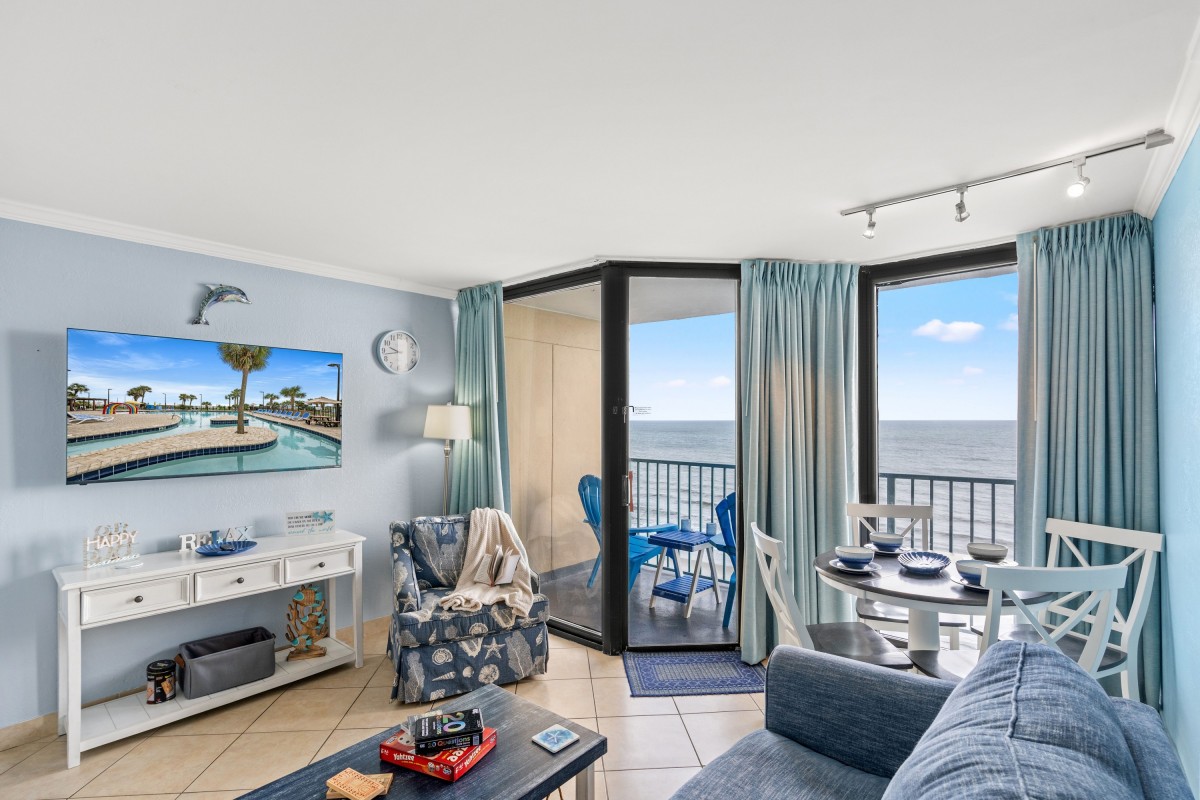 Perfectly designed for a cozy getaway, Sand Dunes Main Tower 2829 features a comfortable living space equipped with a flatscreen TV for ultimate relaxation after a sun-filled day. The fully equipped kitchen makes it easy to whip up delicious meals during your stay. Step out onto the private oceanfront balcony to enjoy breathtaking views of the beach and dazzling ocean beyond. It’s the ideal spot for quiet mornings, dolphin watching, and sipping evening cocktails. Additional amenities to ensure a comfortable and convenient stay include central heating and air, WIFI access, and on-site laundry.