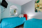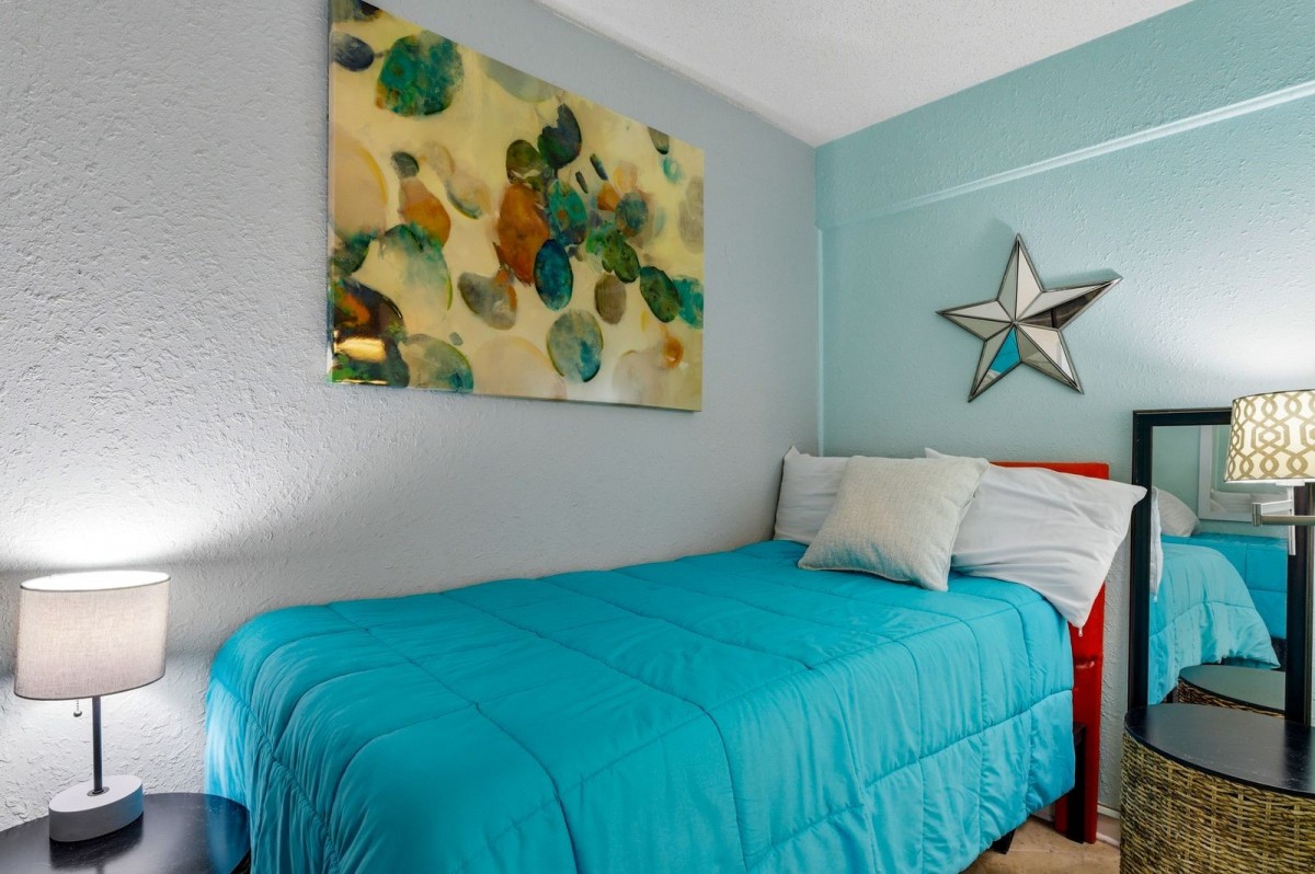 Wake up every morning to the gentle sound of waves crashing against the shore in the dazzling rental. Two bedroom master with a queen size bed and the second bedroom has two single beds, two full bathrooms .