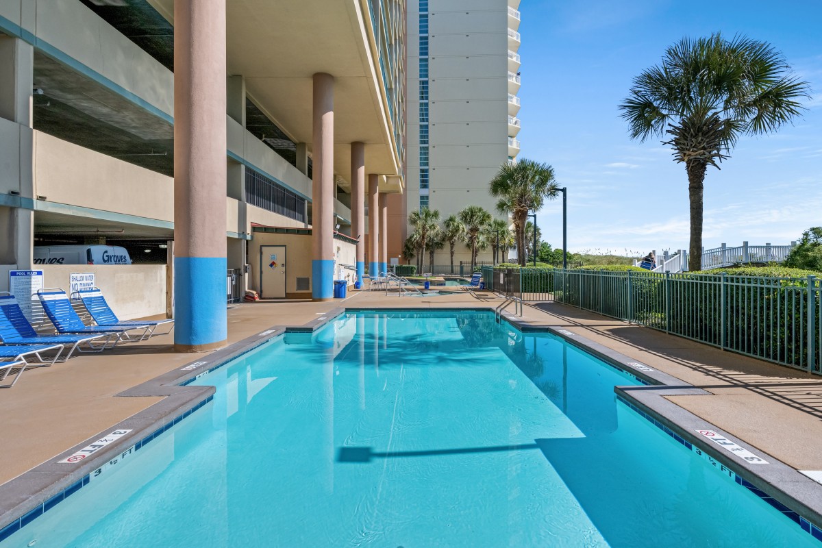 This North Myrtle Beach high rise on the oceanfront has a pool deck with a swimming pool, hot tub and a lazy river so the kids will be happy. The adults will appreciate that this North Myrtle Beach vacation rental has a master bedroom that opens to the oceanfront balcony.