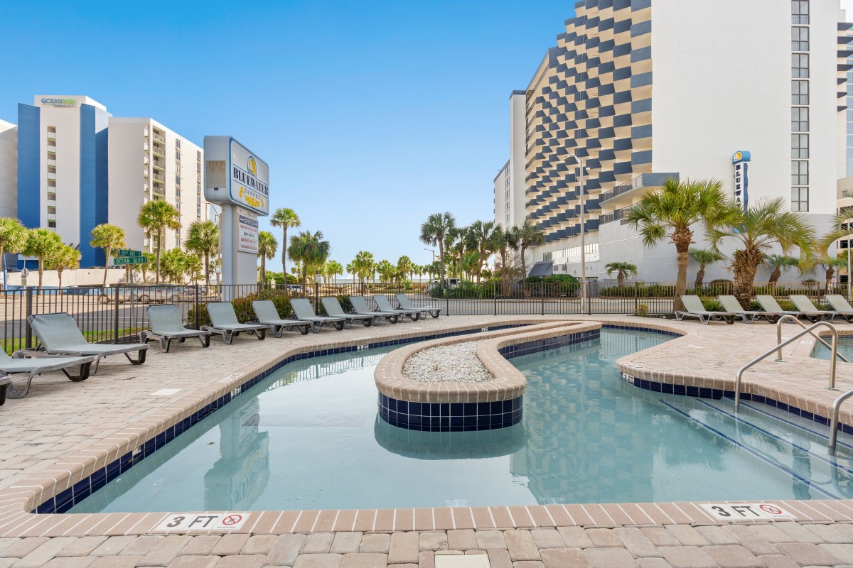 Put yourself in the middle of golf courses, shopping venues, live entertainment theatres, seafood restaurants, water sports and more when you reserve a vacation rental at Bluewater Resort Villas II. This Myrtle Beach resort is found on South Ocean Boulevard in Myrtle Beach, South Carolina and just across the street from the beach. You will be just blocks away from an oceanfront restaurant, water sports that include Sea Doo rentals, sailboat rides and banana boat adventures, and miniature golf courses. Additionally, this second-row resort is down the street from Family Kingdom Amusement Park where you can ride a roller coaster, take the little ones to the kiddie rides and play carnival games. The oceanfront water park entices you to get wet while slipping down a slide and the Myrtle Beach SkyWheel gives you a beautiful view of the Myrtle Beach landscape from high in the sky. It is all so close to Bluewater Resort Villas II.