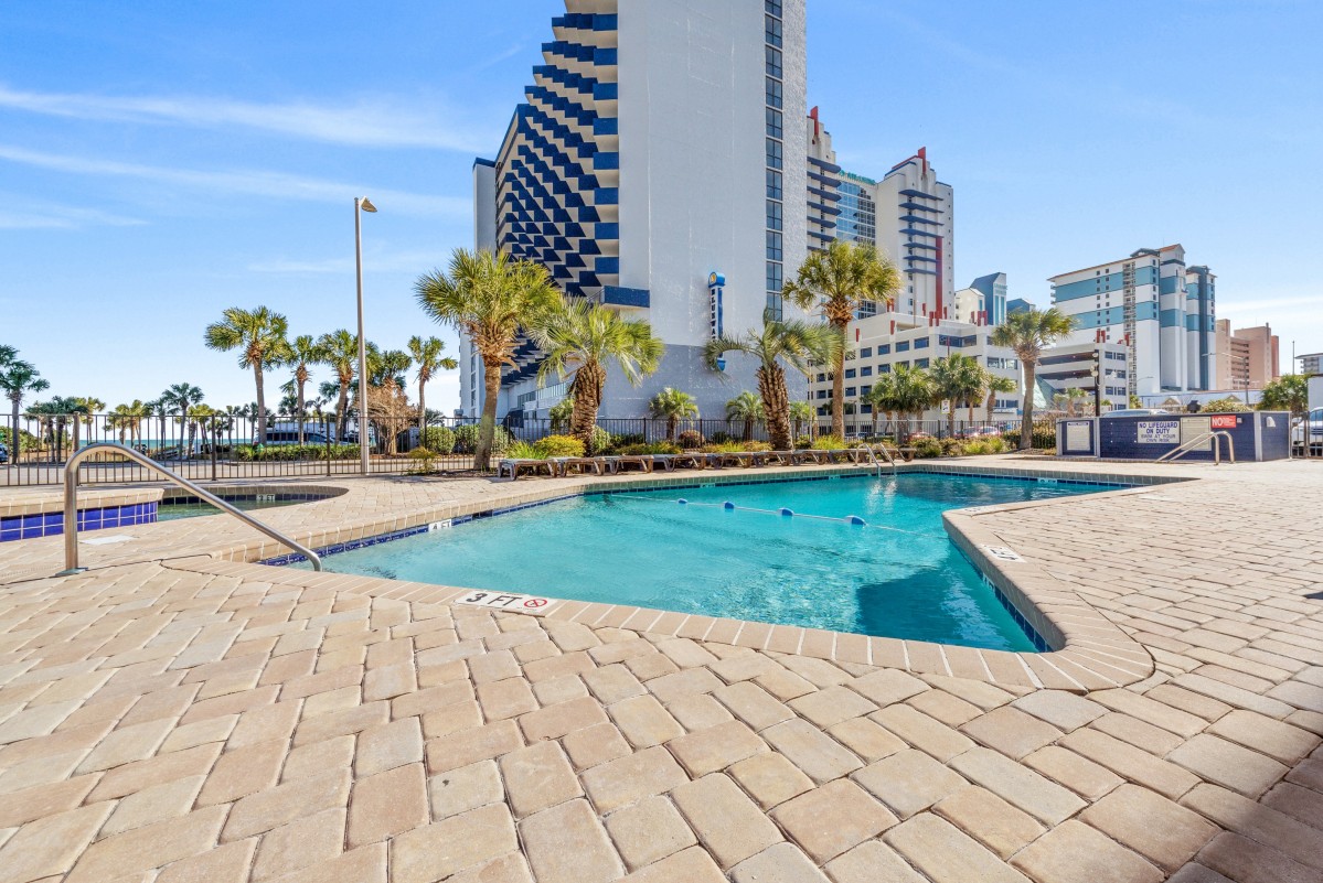 This second-row resort features an enticing pool deck with swimming pools, hot tubs and a lazy river. An on-site restaurant means you do not have to cook or leave the resort for a bite to eat. And a tiki bar invites you to just lounge around by the pool all day and not even retreat to your condo for a cold beverage. There is wireless Internet access for those who need to stay connected and easy beach access for those who want to get away from it all.